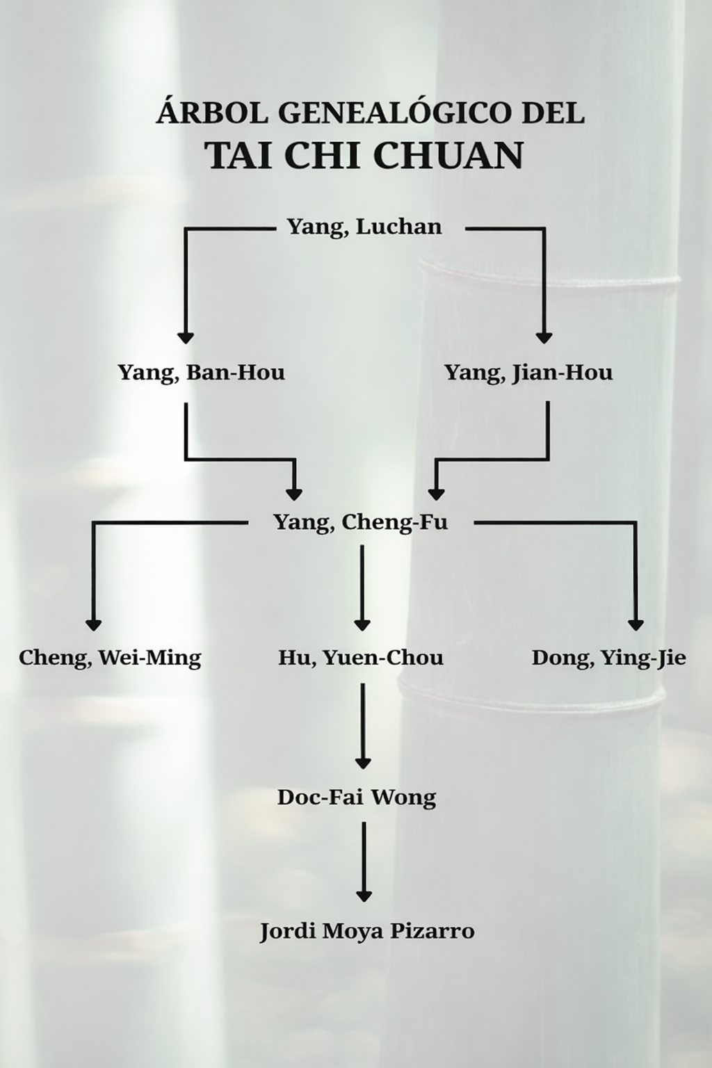 Este es el Árbol Genealógico del Tai Chi Chuan del Sifu Jordi Moya Pizarro: